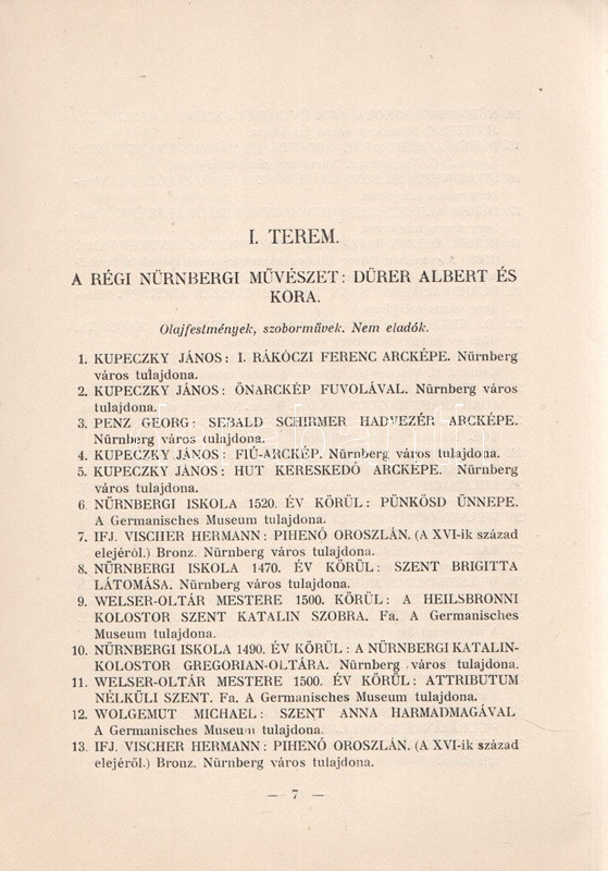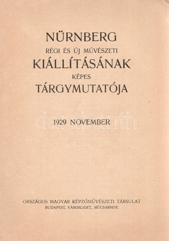 Nürnberg régi és új művészeti kiállításának képes tárgymutatója. 1929 november.