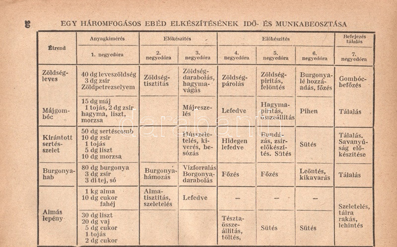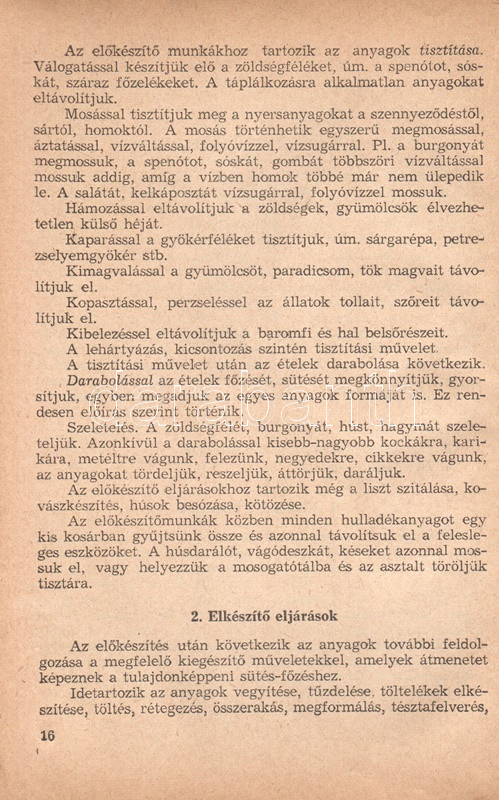 A földművesszövetkezetek részére írt kötet bevezető jellegű munka a szakácsművészetbe, illetve a háztartástanba. Oldalszámozáson belül számos ábrával kísért kötetünk az alapvető eljárások ismertetésén túl döntően ételrecepteket tartalmaz.