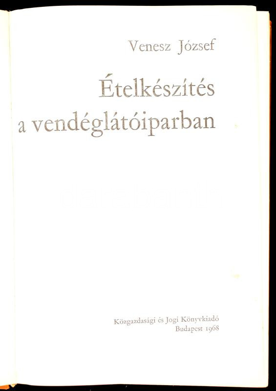 Venesz József: Ételkészítés a vendéglátóiparban. Bp., 1968, Közgazdasági és Jogi. Kiadói nyl-kötés, kissé foltos borítóval, a gerincen kis sérüléssel, néhány kissé foltos lappal.
