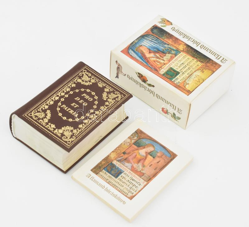 Leírás: A flamand hóráskönyv. Az Országos Széchényi Könyvtárban őrzött gent-brüggei kódex hasonmás kiadása. (Minikönyv). Bp., 1986, Helikon. Kísérőtanulmánnyal. Kiadói aranyozott műbőr-kötés,kiadói papírtokban, jó állapotban.