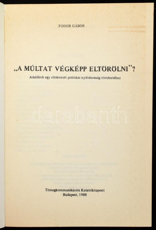 Fodor Gábor: "A múltat végképp eltörölni"? Bp., 1988, Tömegk... https://www.darabanth.com/hu/477-Gyorsarveres/477.0/Konyvek/Konyvek-Tarsadalomtudomany~2000043/Fodor-Gabor-A-multat-vegkepp-eltorolni-Bp-1988-Tomegkommunikacios-Kutatokozpont-K~II3246488