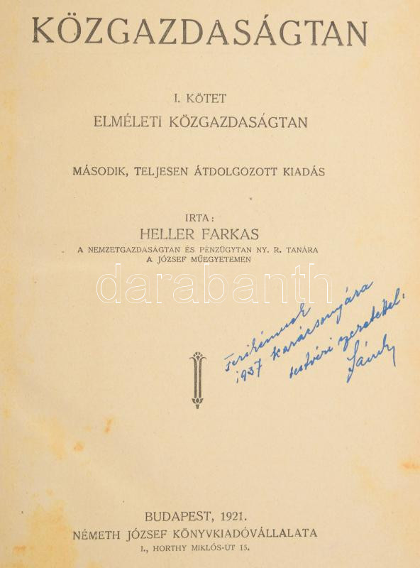 Heller Farkas: Közgazdaságtan. I-II. köt. I. köt.: Elméleti közgazdasá... https://www.darabanth.com/hu/477-Gyorsarveres/477.0/Konyvek/Konyvek-Tarsadalomtudomany~2000043/Heller-Farkas-Kozgazdasagtan-I-II-kot-I-kot-Elmeleti-kozgazdasagtan-II-kotet-Kozg~II3254074