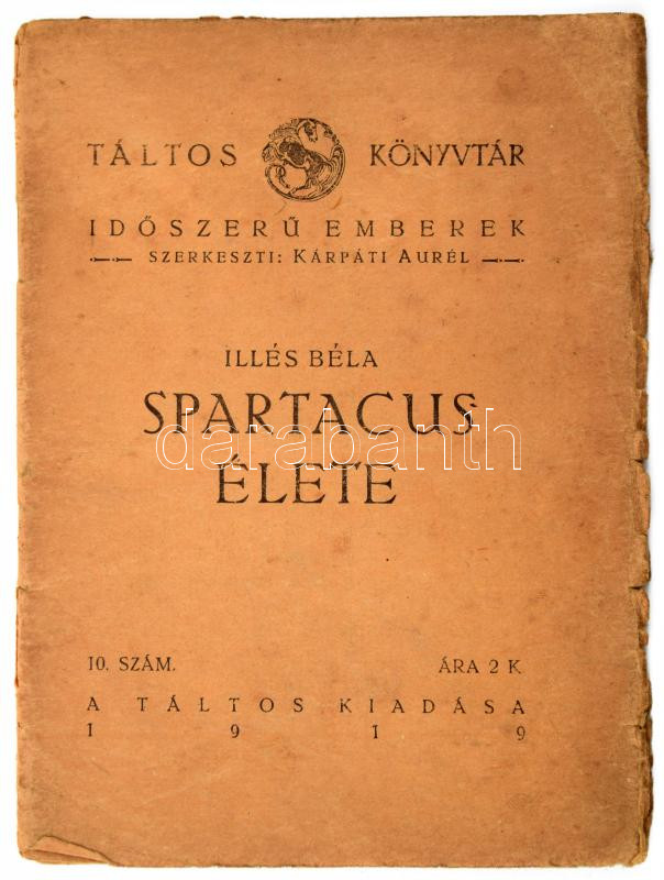 Illés Béla: Spartacus élete. Táltos Könyvtár Időszerű Emberek 10. sz. Bp., 1919,Táltos, 39+1 p. Kiadói papírkötés, foltos, szakadt borítóval, ceruzás bejelölésekkel.