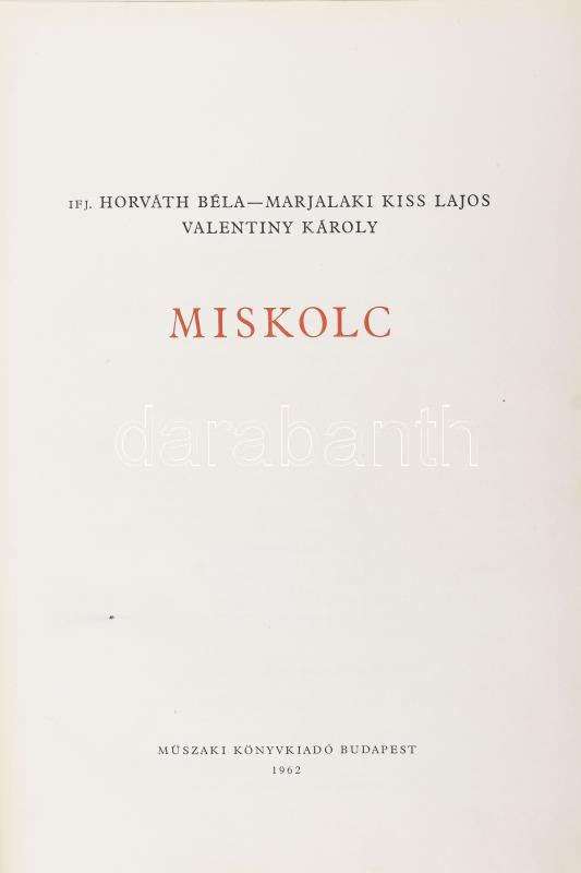 Ifj. Horváth Béla, Marjalaki Kiss Lajos, Valentiny Károly: Miskolc. Vá... https://www.darabanth.com/hu/477-Gyorsarveres/477.0/Konyvek/Konyvek-Utazas-helytortenet~2000016/Ifj-Horvath-Bela-Marjalaki-Kiss-Lajos-Valentiny-Karoly-Miskolc-Varoskepek-Muemlekek-Bp~II3251024