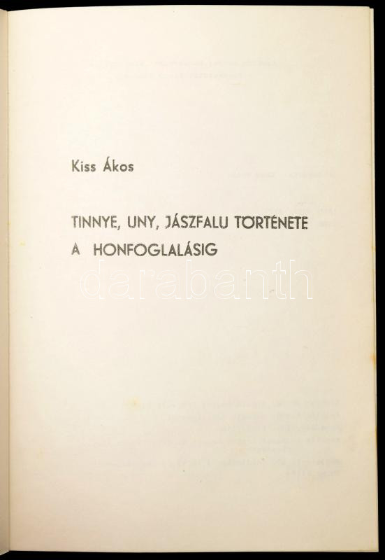 Kiss Ákos: Tinnye, Uny, Jászfalu története a honfoglalásig. Komárom Megyei Honismereti Kiskönyvtár. Tatabánya, én., József Attila Megyei Könyvtár. Kiadói papírkötés. Megjelent 520 példányban.