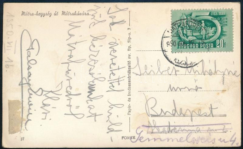 1950 Galsay Ervin (1923-1976) operaénekes, érdemes művész és felesége Benedikt Klára (1921-1995) zongoraművésznő autográf sorai és aláírása mátraházai képeslapon