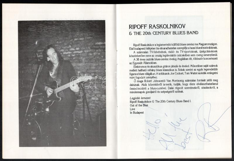 1994 Bluesapest plakát + ismertető füzet, benne Ripoff Raskolnikov alá... https://www.darabanth.com/hu/477-Gyorsarveres/477.0/Mutargy-papirregiseg-egyeb/Alairas~1000026/1994-Bluesapest-plakat-plus-ismerteto-fuzet-benne-Ripoff-Raskolnikov-alairasaval~II3246459