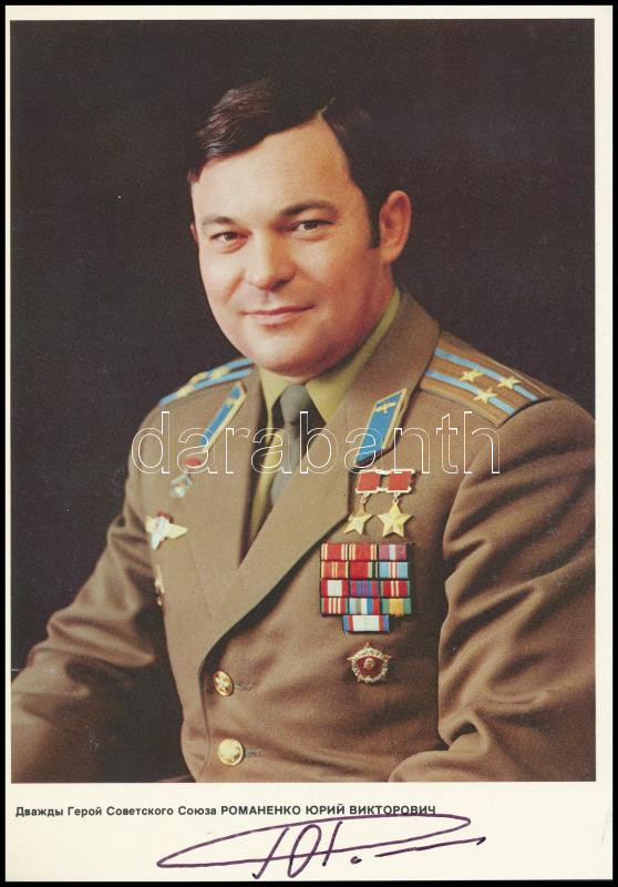 Jurij Viktorovics Romanyenko (1944- ), szovjet űrhajós aláírása képen / Signature of Yuriy Viktorovich Romanenko (1944- ) Soviet astronaut on card15x21 cm