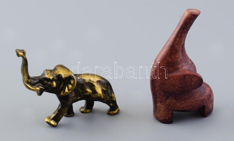 Leírás: 2 db elefánt figura. Réz, festett öntött márvány. sz: 9 cm, m: 11 cm