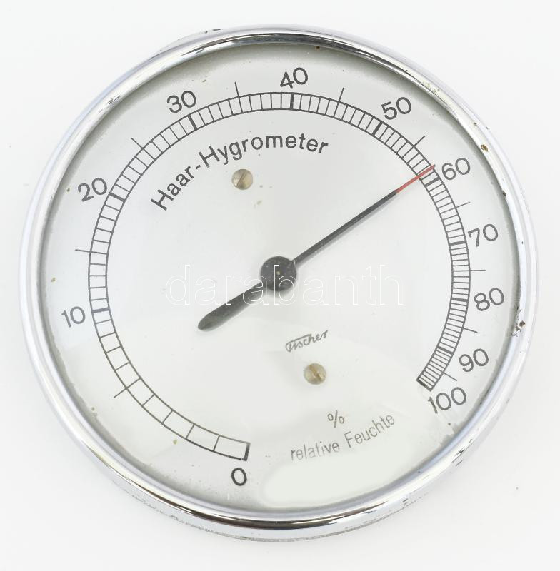 Leírás: Hygrometer (páratartalom-mérő), fém és műanyag, d: 10 cm