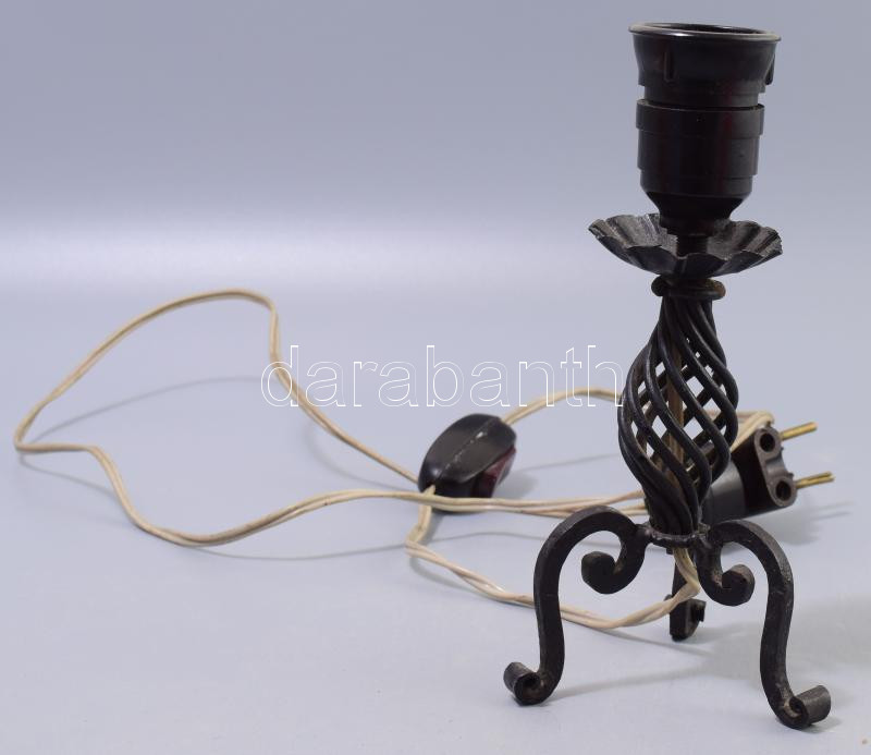 Leírás: Kovácsoltvas régi asztali lámpa. 20 cm