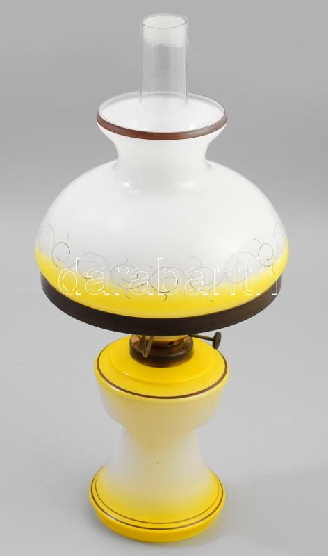 Peroleum lámpa üveg testtel, üveg búrával, hibátlan. 43 cm https://www.darabanth.com/hu/477-Gyorsarveres/477.0/Mutargy-papirregiseg-egyeb/Bolhapiac~1000017/Peroleum-lampa-uveg-testtel-uveg-buraval-hibatlan-43-cm~II3254178