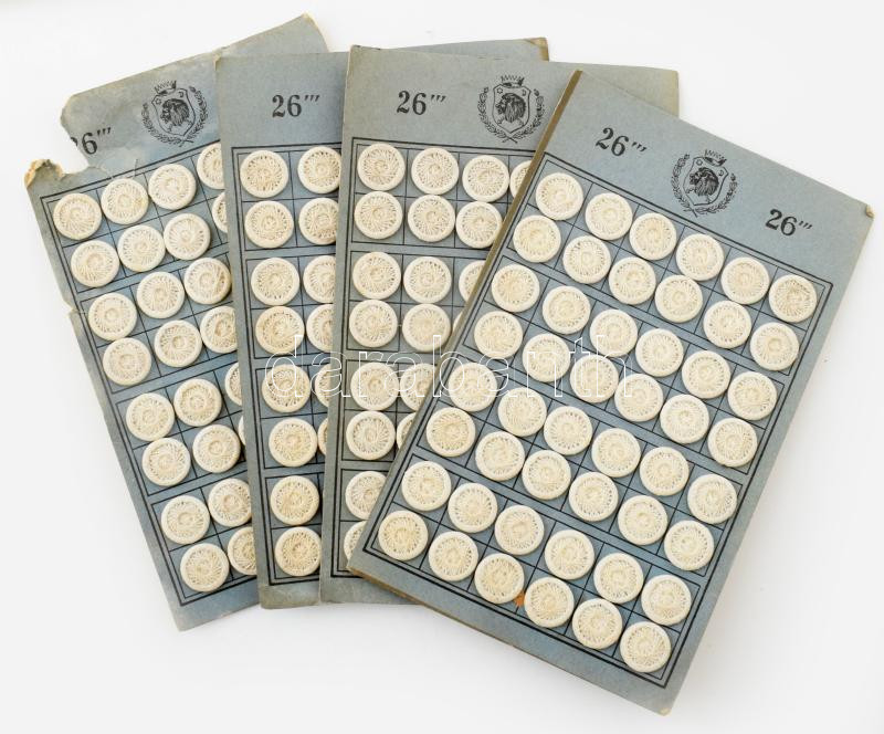 Leírás: Régi szövetgomb szettek, 4x48 (össz. 192) db, eredeti papírokon