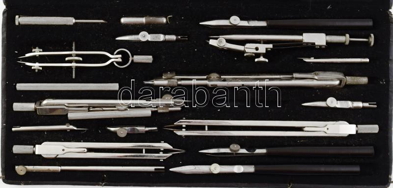 Leírás: Turán Schuler József körző készlet, teljes, dobozában