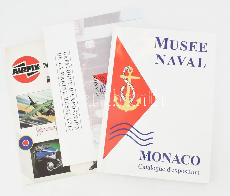 Vegyes hajózási tétel, 2 db: Musee Naval Monaco. Catalogue d'exposition. 2002. Francia nyelven.; Musee Naval Monaco. Catalogue d'exposition de la Marine Russe 2015. Francia nyelven.; + 1991 Airflix New Realeases.