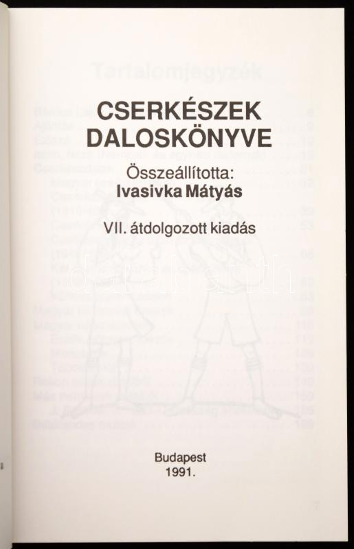 Leírás: Ivasivka Mátyás: Cserkészek daloskönyve. VII. átdolgozott kiadás. Cserkészvezetők Kiskönyvtára. A Vezetők Lapja könyvsorozata 4. Bp., 1991, Márton Áron Kiadó. Kiadói papírkötés, jó állapotban.