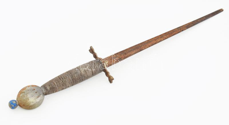 Antik tőr, festett fa markolattal, korrodált pengével, h: 47 cm https://www.darabanth.com/hu/477-Gyorsarveres/477.0/Mutargy-papirregiseg-egyeb/Fegyverek-kesek~2000008/Antik-tor-festett-fa-markolattal-korrodalt-pengevel-h-47-cm~II3252710