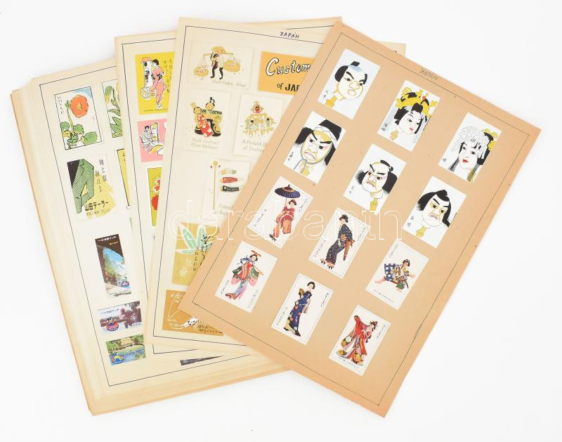 Leírás: cca 1000-1200 darab japán gyufacímke, lapokra ragasztva