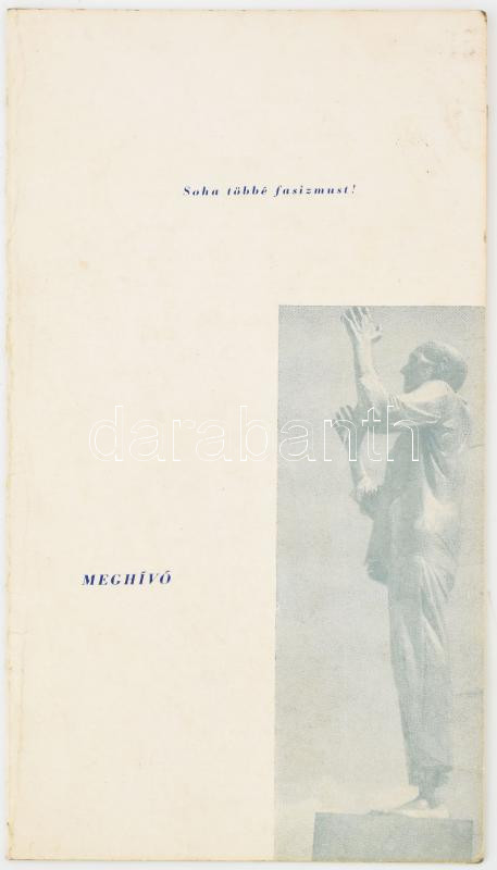 1959 Nácizmus Üldözötteinek Bizottsága meghívója, hiányos sarokkal. https://www.darabanth.com/hu/477-Gyorsarveres/477.0/Mutargy-papirregiseg-egyeb/Judaika~2000005/1959-Nacizmus-Uldozotteinek-Bizottsaga-meghivoja-hianyos-sarokkal~II3247932
