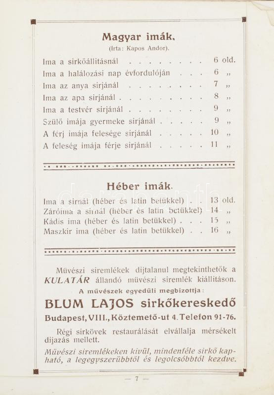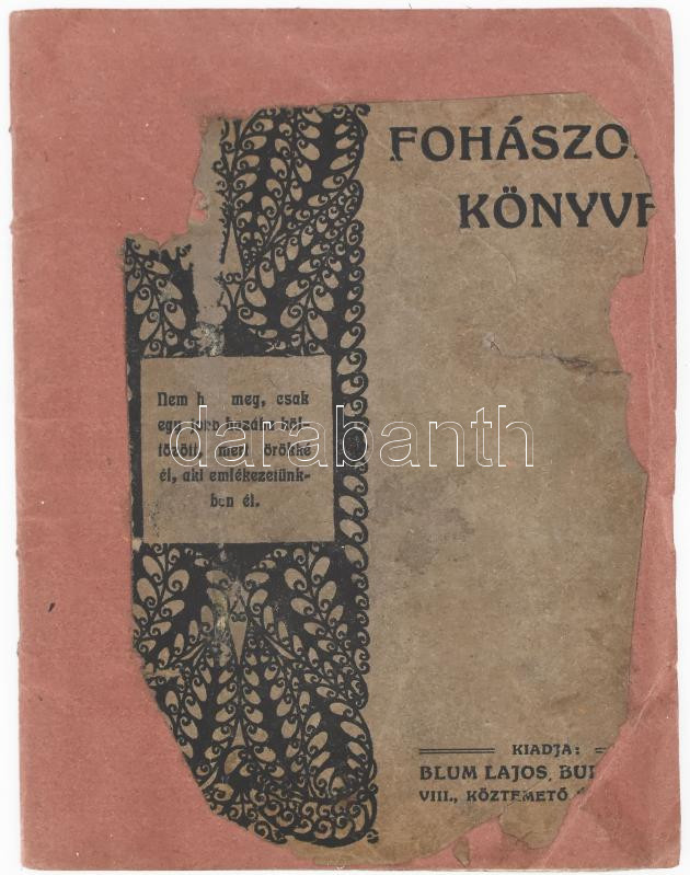 cca 1910 Fohászok könyve, kiadja Blum Lajos, újrakötött papírkötés, ko... https://www.darabanth.com/hu/477-Gyorsarveres/477.0/Mutargy-papirregiseg-egyeb/Judaika~2000005/cca-1910-Fohaszok-konyve-kiadja-Blum-Lajos-ujrakotott-papirkotes-kopottas-allapotban~II3251737
