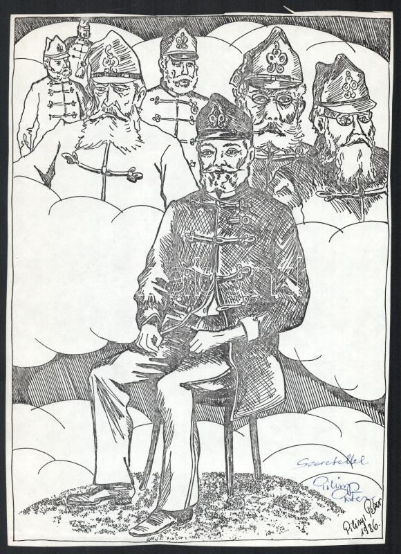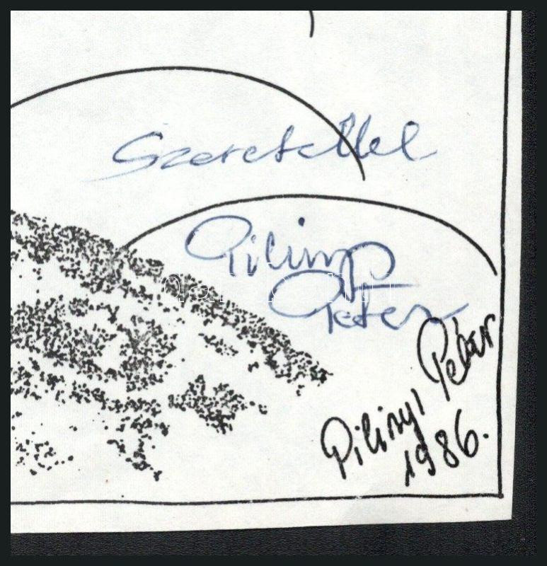 Leírás: 1848-49-i honvéd katonák, Pilinyi Péter grafikája, nyomtatvány, Pilinyi Péter által dedikált, 29×22 cm