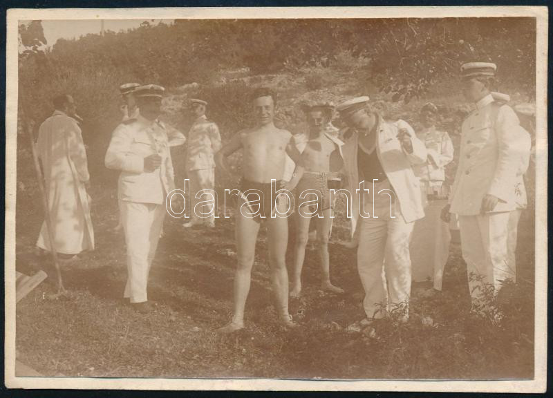 1906 S.M.S. Budapest osztrák-magyar hadihajó legénysége, és tisztjei piknikelnek Cataro mellett / 1906. The crew and officers of the Austro-Hungarian warship S.M.S Budapest have a picnic next to Cataro 12x9 cm