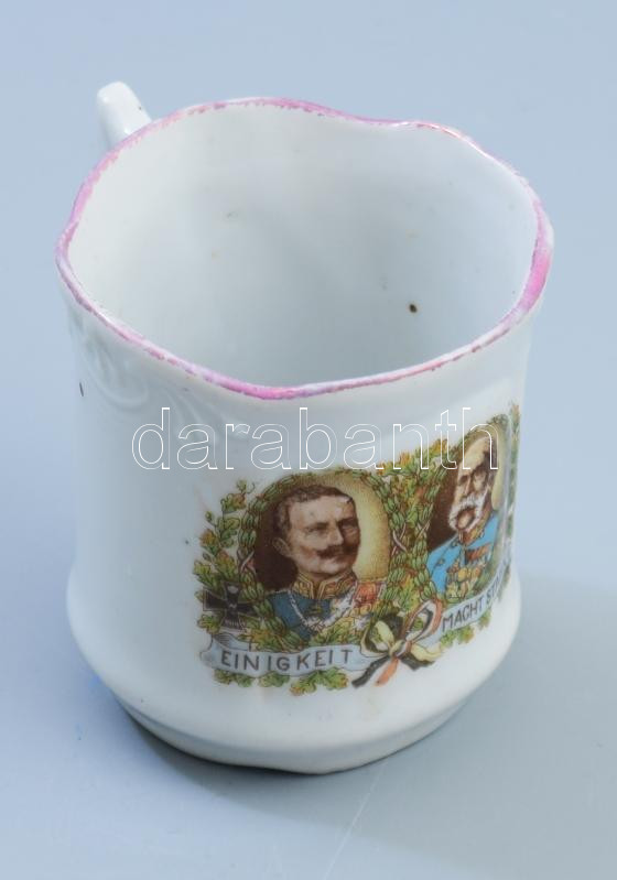 Leírás: I. vh-s propaganda csésze, II. Vilmos és Ferenc József arcképével, m: 7 cm