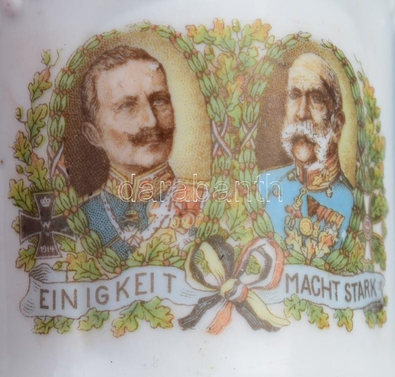 I. vh-s propaganda csésze, II. Vilmos és Ferenc József arcképével, m: ... https://www.darabanth.com/hu/477-Gyorsarveres/477.0/Mutargy-papirregiseg-egyeb/Militaria~2000009/I-vh-s-propaganda-csesze-II-Vilmos-es-Ferenc-Jozsef-arckepevel-m-7-cm~II3250022