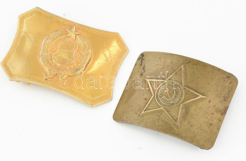 Magyar és szovjet katonai övcsat. 8 cm, 7 cm https://www.darabanth.com/hu/477-Gyorsarveres/477.0/Mutargy-papirregiseg-egyeb/Militaria~2000009/Magyar-es-szovjet-katonai-ovcsat-8-cm-7-cm~II3254150
