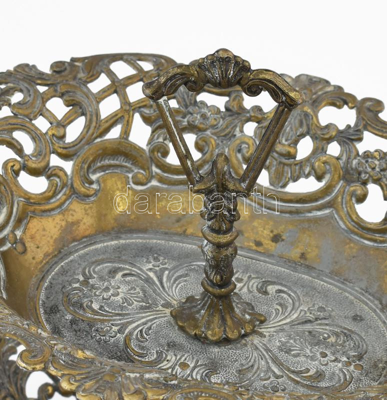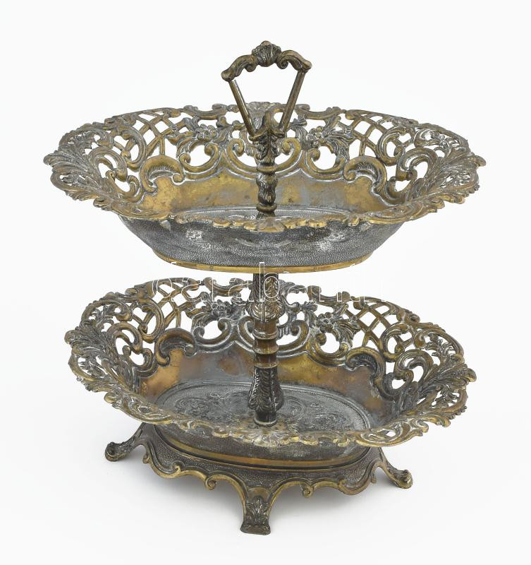 Leírás: Antik réz sütemény kínáló. Áttört, két szintes,28x25x17 cm