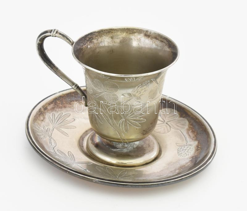 Leírás: Szandrik alpakka kávés csésze, virág díszítéssel, Jelzett,