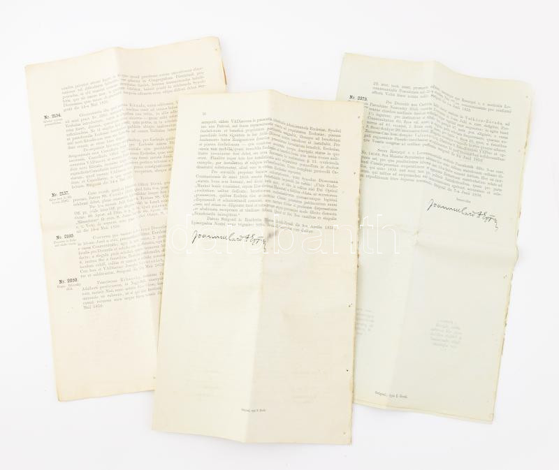 Leírás: 1859 Az Esztergomi egyházmegye Scitovszky hercegprímás körlevelei 3 db, összesen 16 oldalon, iskolai, vagyonjogi témában, latinul