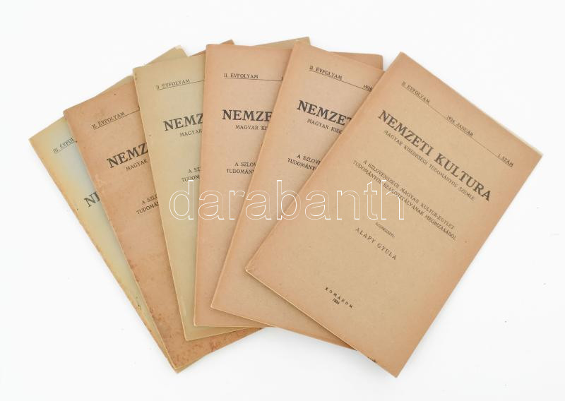 1934 Komárom, a Nemzeti Kultúra - Magyar Kisebbségi Tudományos Szemle ... https://www.darabanth.com/hu/477-Gyorsarveres/477.0/Mutargy-papirregiseg-egyeb/Nyomtatvanyok~2000013/1934-Komarom-a-Nemzeti-Kultura-Magyar-Kisebbsegi-Tudomanyos-Szemle-6-db-szama~II3244703