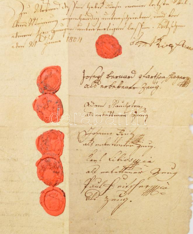 Leírás: 1804 Lúcsony (Mosonmagyaróvár) végrendelet 6 db nemesi gyűrűspecséttel