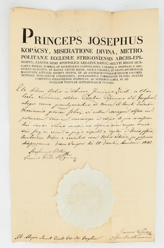 1842 Kollár István (1764-1844) királyi tanácsos, kanonok, tribunici vá... https://www.darabanth.com/hu/477-Gyorsarveres/477.0/Mutargy-papirregiseg-egyeb/Okmanyok~1000023/1842-Kollar-Istvan-1764-1844-kiralyi-tanacsos-kanonok-tribunici-valasztott-puspok-nagypr~II3231118