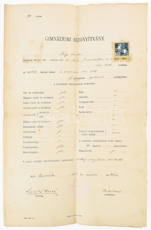 1899 Gimnáziumi bizonyítvány, rajta Laczkó Dezső geológus, paleontológ... https://www.darabanth.com/hu/477-Gyorsarveres/477.0/Mutargy-papirregiseg-egyeb/Okmanyok~1000023/1899-Gimnaziumi-bizonyitvany-rajta-Laczko-Dezso-geologus-paleontologus-piarista-tanar-al~II3247948