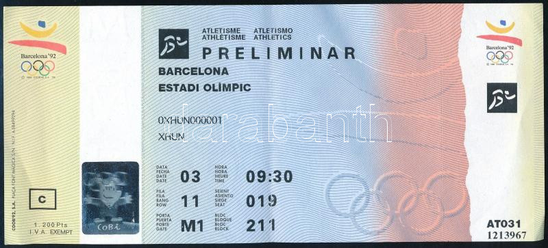 Leírás: 1992 Barcelona, olimpiai belépőjegy atlétikai versenyre