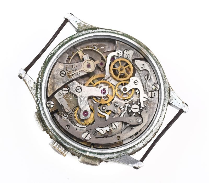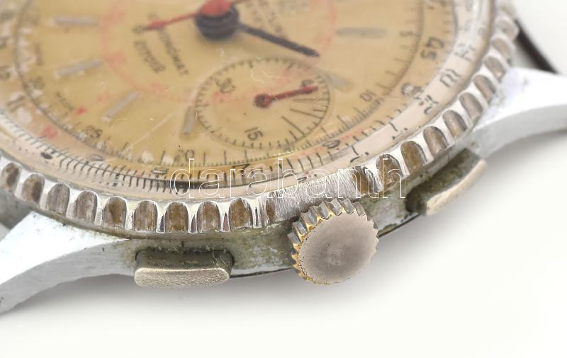 Leírás: Kronográfos mechanikus karóra, jelzés nélküli szerkezettel, Breitling Chronomat számlappal. Működik, számlapon sérülésekkel d: 34 mm
