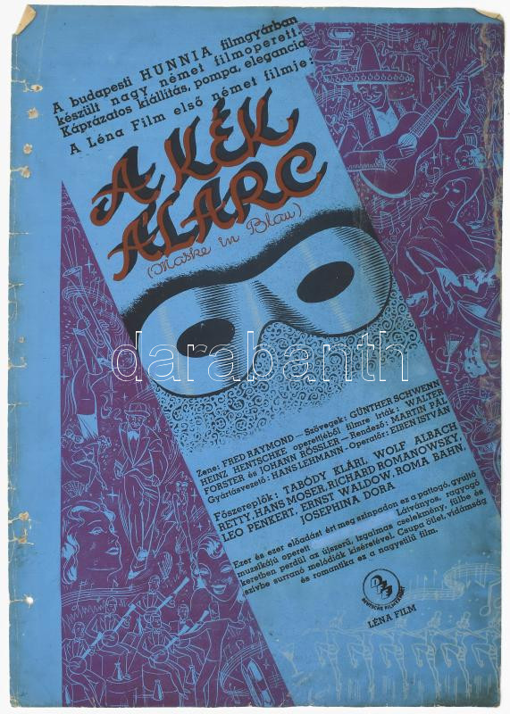 1942 Martin Pál A kék álarc című filmjének plakátja, kissé viseltes, 3... https://www.darabanth.com/hu/477-Gyorsarveres/477.0/Mutargy-papirregiseg-egyeb/Plakat~2000014/1942-Martin-Pal-A-kek-alarc-cimu-filmjenek-plakatja-kisse-viseltes-33x23-cm~II3244858
