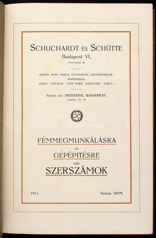 1914 Schuchardt és Schütte fémmegmunkálásra és gépépítésre való szerszámok. 1914. Sz. 300 M. Gazdag fekete-fehér képanyaggal illusztrált. Aranyozott félvászon-kötések, 4+438 p.