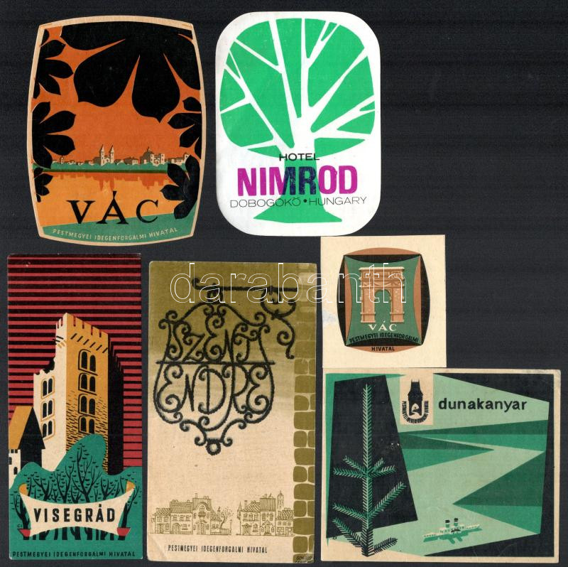 6 db retró hotelcímke (Dunakanyar és környéke) https://www.darabanth.com/hu/477-Gyorsarveres/477.0/Mutargy-papirregiseg-egyeb/Reklam~2000002/6-db-retro-hotelcimke-Dunakanyar-es-kornyeke~II3253097