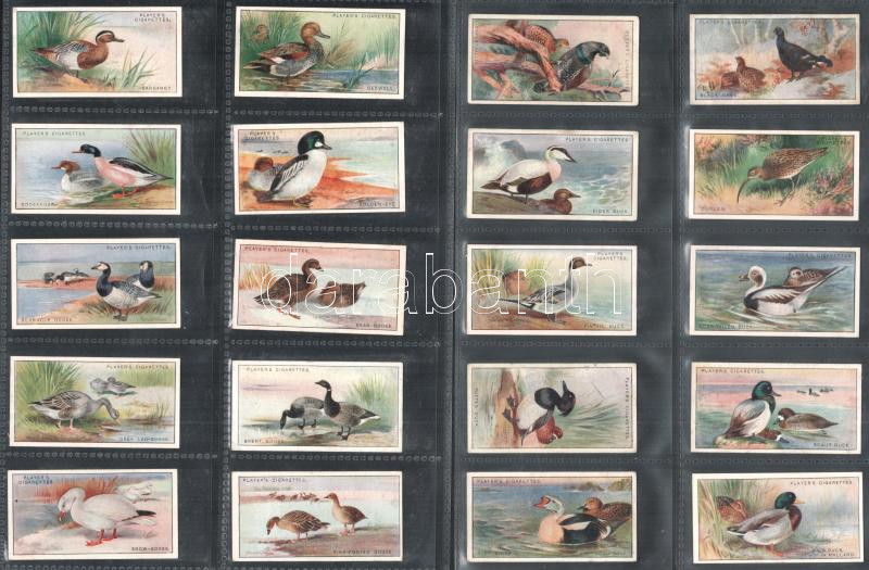 Player's Cigarettes angol cigaretta-gyűjtőképek, 50 db-os komplett sorozat (vadon élő madarak), albumlapokon / English cigarette collectible pictures, complete series of 50 (Game Birds and Wild Fowl), in album sheets