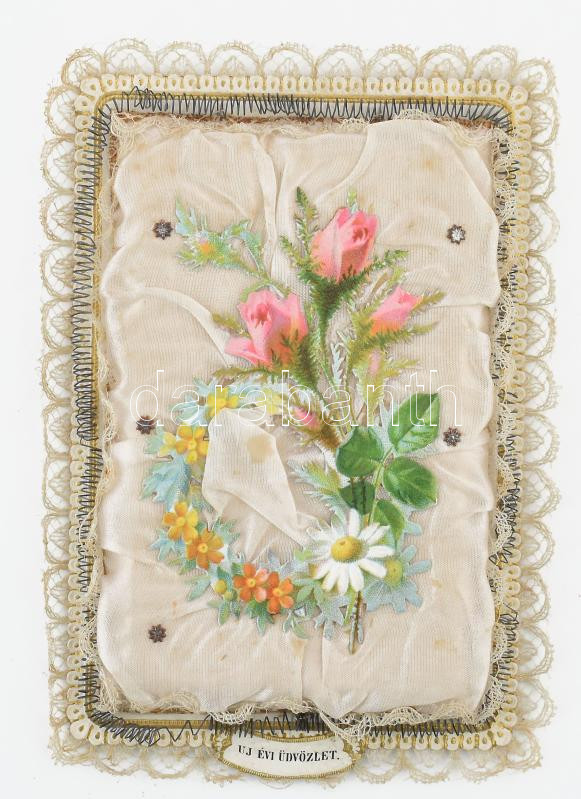Leírás: cca 1880 Díszes újévi üdvözlőlap, 13x8 cm