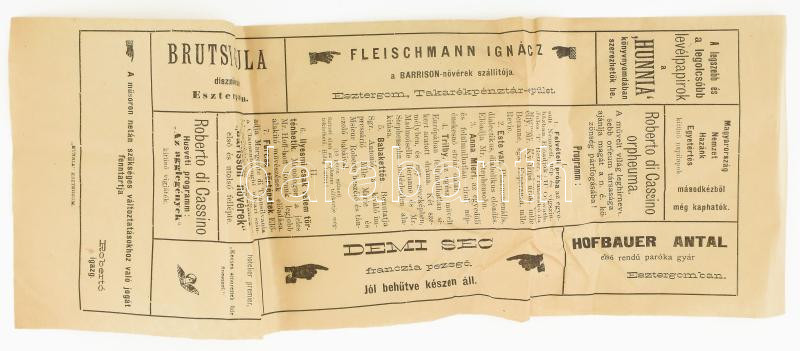 cca 1920 Roberto di Cassino orpheuma, műsoros reklámlap, hajtott, kiss... https://www.darabanth.com/hu/477-Gyorsarveres/477.0/Mutargy-papirregiseg-egyeb/Reklam~2000002/cca-1920-Roberto-di-Cassino-orpheuma-musoros-reklamlap-hajtott-kisse-gyurott-42-5x15-cm~II3253903