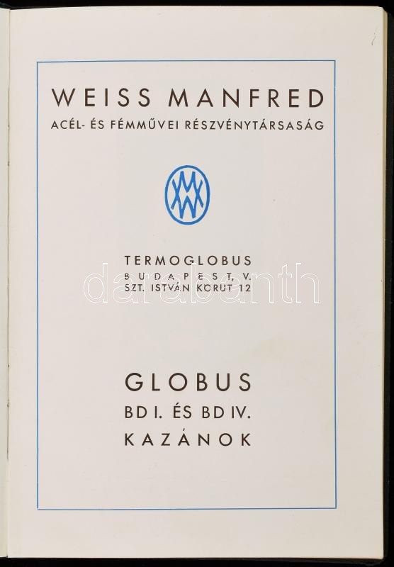 cca 1930-1935 Weiss Manfréd Acél- és Fémművei Rt. - Globus BD I. és BD IV. kazánok. Bp., Közlekedési-ny., 52 p. Fekete-fehér és színes illusztrációkkal. Kiadói aranyozott egészvászon-kötés, jó állapotban, a borítón némi kopással.