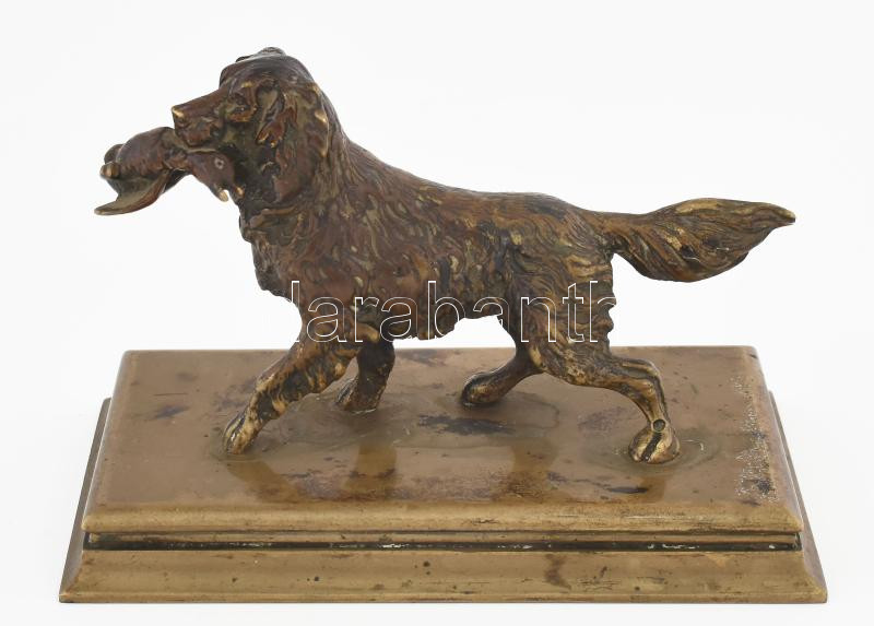Leírás: Vadászkutya prédával. Íróasztali szobor. Bronz, réz alapon XIX. sz. sz: 16 cm