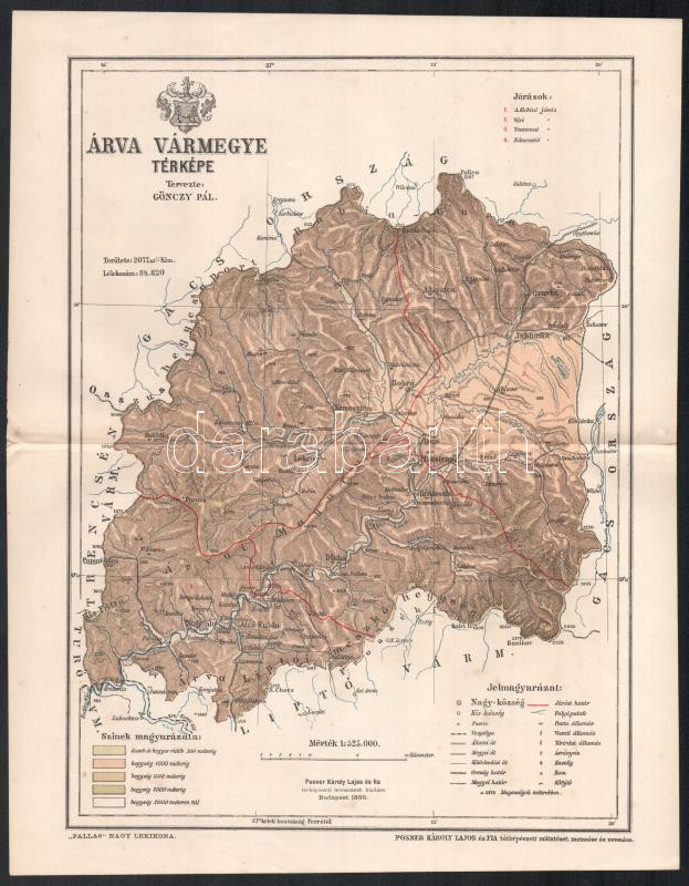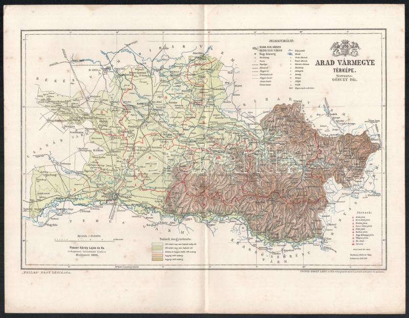 1895 Arad vármegye és Árva vármegye térképe (2 db), tervezte: Gönczy Pál, Bp., Posner Károly Lajos és Fia, a Pallas Nagy Lexikona mellékletei, kissé foltos, 23,5x30,5 cm