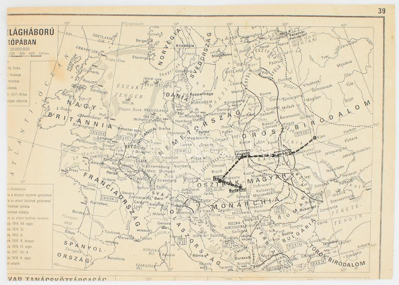 Leírás: 1917-1918-as európai csapatmozgásokat ábrázoló térképrészlet, 21x29 cm