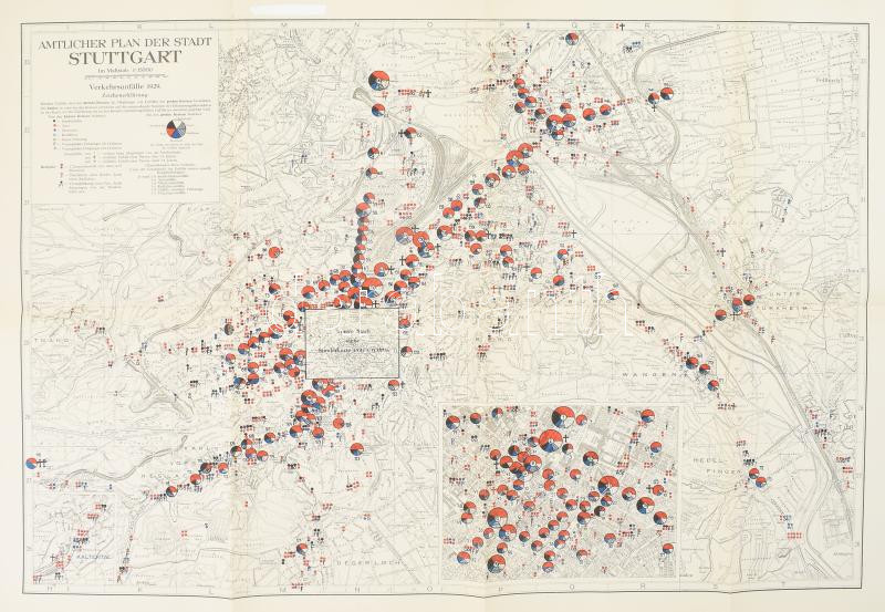 Leírás: 1929 Amtlicher Plan der Stadt Stuttgart, 1:15 000, hibajavítós javítással, 62×92 cm