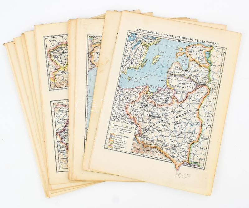 Leírás: cca 1920-1930 14 db térkép (lexikonból): Európa, USA, Német Birodalom, Románia, stb., 24x18 cm